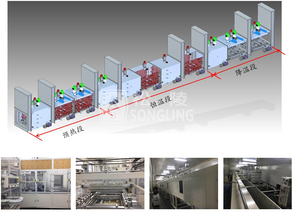 隧道式全自動(dòng)真空烘烤線是根據(jù)客戶現(xiàn)有生產(chǎn)和工藝需要,專門(mén)開(kāi)發(fā)的一款電池注液前烘烤的自動(dòng)真空隧道式流水線;如果更換相關(guān)工裝夾具,同時(shí)也可以進(jìn)行極卷的烘烤和電芯規(guī)格烘烤。